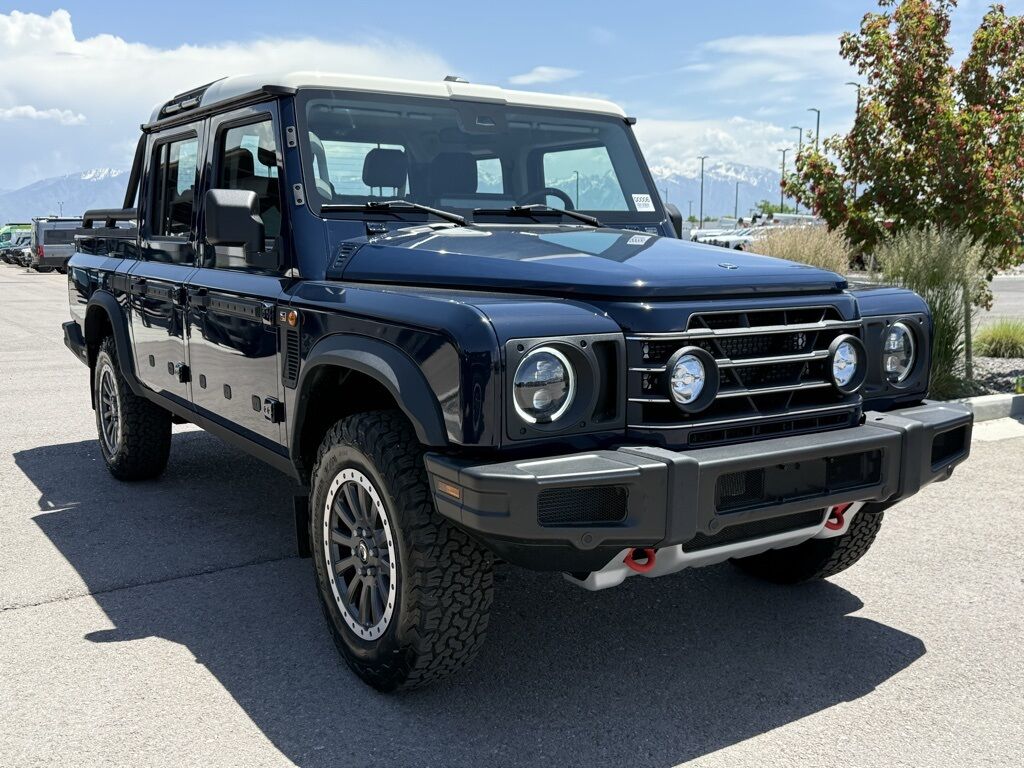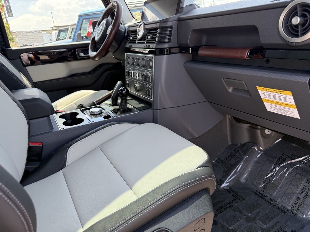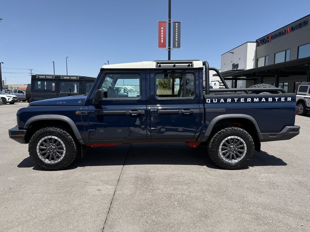 Britannia Blue 2025 INEOS Quartermaster Fieldmaster Edition 4WD 8-Speed Automatic 3.0L I6 18'' Alloy Wheels, ABS brakes, Class III 2'' NAS Tow Hitch & Electrics, Compass w/Altimeter, Electronic Stability Control, Front & Rear Differential Locks, HALO Red Powder Coat Contrast Ladder Frame, Heated door mirrors, Heated Front Bucket Seats, Illuminated entry, Leather Seat Trim, Low tire pressure warning, Navigation System, Premium Sound System, Remote keyless entry, Rough Pack w/18'' Wheels, Saddle Leather Driver's Pack, Safari Windows, Scottish White Painted Contrast Roof, Traction control.