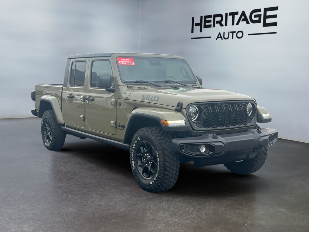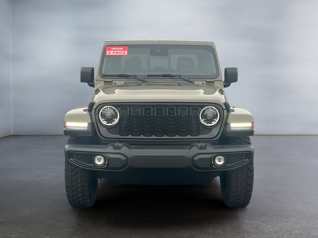 Introducing the 2025 Jeep Gladiator Willys, a robust and versatile pickup tailored for both rugged adventures and everyday driving. This model boasts a 4WD system, ensuring optimal traction and control on any terrain. Under the hood lies a potent V6, 3.6L engine that delivers a remarkable balance of power and efficiency, making it perfect for off-road escapades or city commutes. Equipped with an Off-Road Package, the Jeep Gladiator Willys is prepared to tackle challenging landscapes with confidence. The package includes specialized suspension enhancements, skid plates, and all-terrain tires, ensuring you're ready for whatever the trail may bring. Safety is paramount, and the Forward Collision Warning system provides an extra layer of protection by alerting you to potential hazards on the road. Stay connected and entertained with the integrated Hands-Free Bluetooth and Android Auto, allowing seamless access to navigation, music, and communication without taking your eyes off the road. The convenience of Remote Start ensures your vehicle is ready to go when you are, offering comfort and ease from the moment you step inside. Experience the perfect fusion of rugged capability and modern technology with the 2025 Jeep Gladiator Willys—a vehicle designed for those who seek adventure without compromising on comfort or safety.