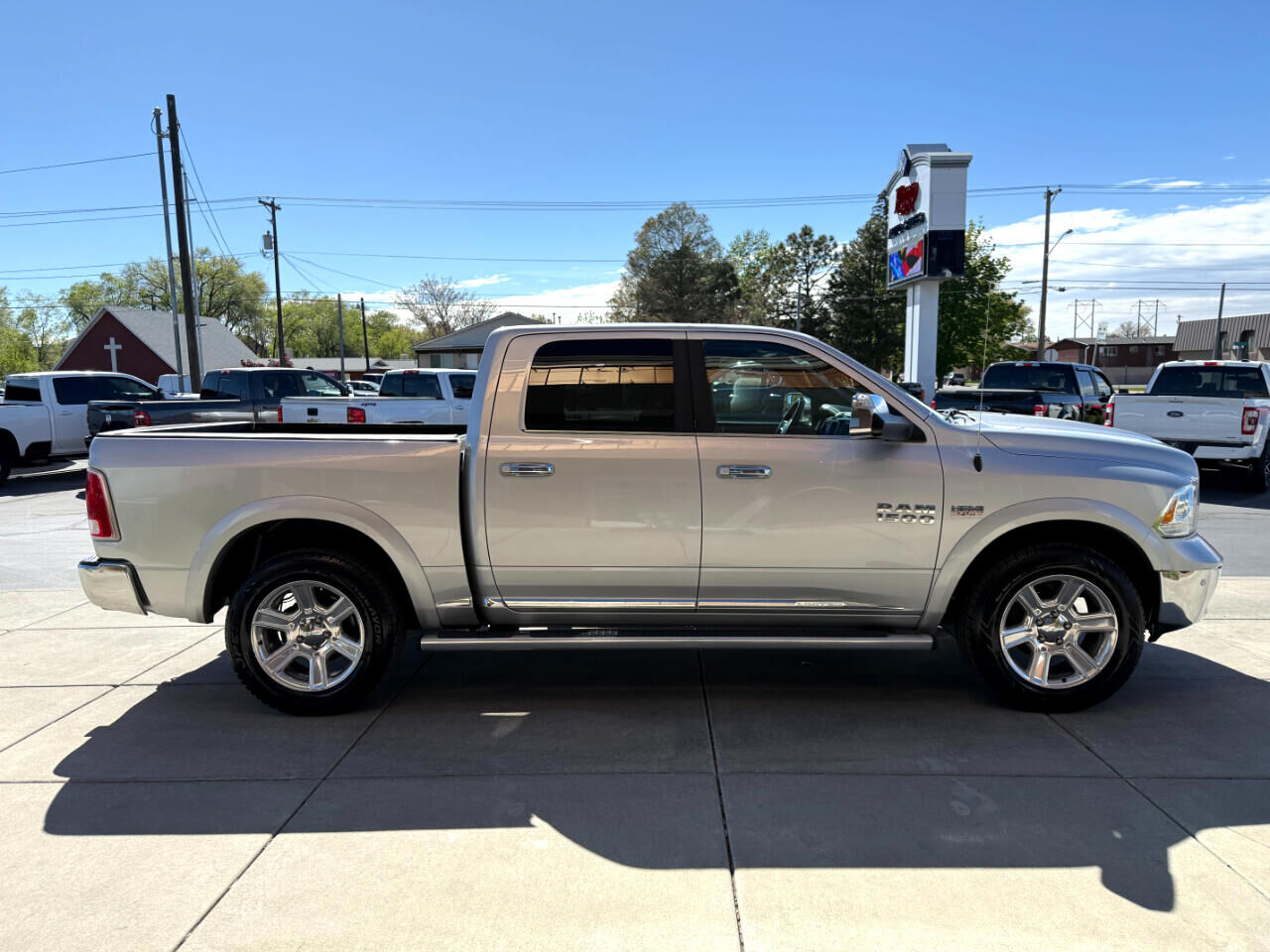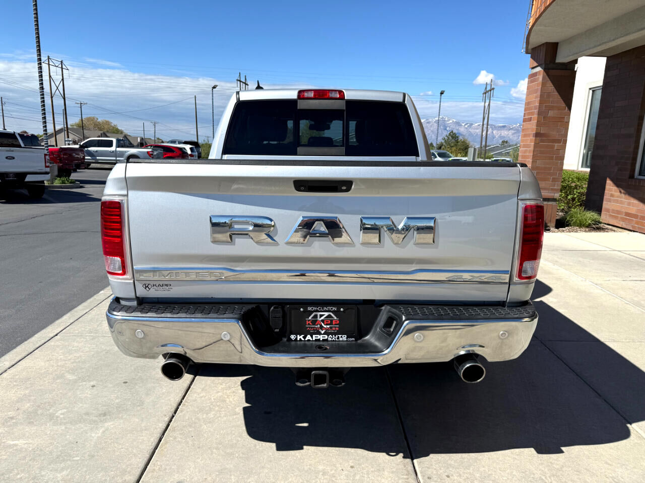 CLEAN CARFAX REPORT WITH GREAT SERVICE RECORDS! Available at our Roy Location. FREE 3 MONTH/3,000 MILE WARRANTY Get ready to conquer the road in this sleek Silver 2016 RAM 1500 Laramie Limited 4x4! Equipped with a powerful 5.7L V8 HEMI engine, this truck is ready for any adventure you have in mind. With features like a Class IV Receiver Hitch, Trailer Wiring Harness, and Trailer Sway Control, towing will be a breeze. The 4-Corner Air Suspension and Electronic Transfer Case ensure a smooth ride whether you're on or off the beaten path. Step inside the luxurious cabin and enjoy the convenience of features like the Uconnect 8.4 NAV system, heated steering wheel, and mobile hotspot internet access. The interior offers a blend of comfort and style with leather trim inserts, wood accents, and power-adjustable pedals. Stay connected with SiriusXM Traffic Real-Time Traffic Display and the ability to stream audio.Safety is a top priority with ParkSense Front and Rear Parking Sensors, a ParkView Back-Up Camera, and multiple airbags throughout. Plus, rest easy knowing a Carfax report is available for this vehicle.Don't miss your chance to own this incredible 2016 RAM 1500, where power, luxury, and safety all come together seamlessly. GIVE US A CALL TODAY AT 801-825-0800 OR TEXT US AT EITHER 801-644-2002 OR 801-941-7848.