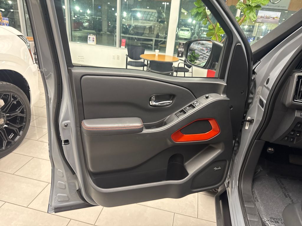 Inside, the Frontier PRO-4X offers a premium and well-appointed cabin, with features like dual-zone automatic climate control, heated front seats, and a Fender Premium Audio System that will keep you entertained and comfortable on every journey. The Intelligent Around View Monitor and Nissan Door-to-Door Navigation system provide added convenience and confidence, while the wireless charging and USB charging cable kit keep your devices powered up.