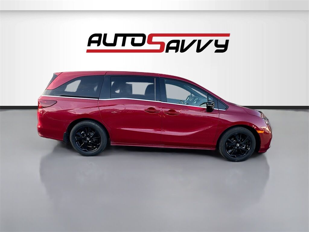 Explore the 2023 Honda Odyssey Sport at AutoSavvy Draper, a certified pre-owned passenger van that seamlessly blends style, performance, and advanced technology. With only 34,623 miles, this vehicle promises reliability and longevity. Under the hood, the powerful 3.5L V-6 engine delivers 280 horsepower, paired with a 10-speed automatic transmission for smooth and efficient driving, achieving up to 28 MPG on the highway. The Odyssey's maroon exterior is complemented by a luxurious black leather interior, offering heated front seats, a power moonroof, and seating for up to eight passengers. Stay connected with Apple CarPlay, Android Auto, and a premium audio system with 7 speakers. Safety features include Adaptive Cruise Control, Lane Departure Warning, and a Blind Spot Monitor, ensuring peace of mind on every journey. This 2023 Honda Odyssey boasts a branded title, underscoring AutoSavvy Draper's commitment to offering high-quality vehicles at exceptional value. Despite its branded status, this Odyssey is in excellent condition, thoroughly inspected to ensure reliability and performance. Backed by our certification, it includes a 4-month/4,500-mile warranty, providing additional peace of mind. Visit AutoSavvy Draper today to experience the perfect blend of luxury, technology, and safety in the Honda Odyssey Sport. Join a community of savvy buyers who trust AutoSavvy for their automotive needs and enjoy a superior buying experience where quality meets value.