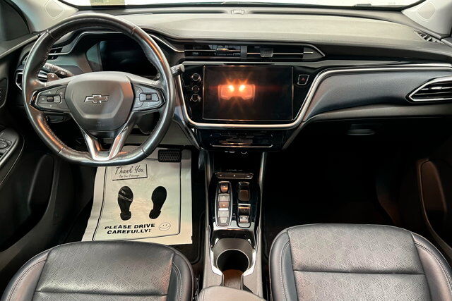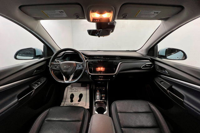 ELECTRIC DRIVE UNIT (200 HP [150 KW] 266 LB-FT OF TORQUE [360 N-M]) (STD),LPO ALL-WEATHER CARGO MAT,PREMIER PREFERRED EQUIPMENT GROUP includes standard equipment,ENGINE NONE (STD),JET BLACK/NIGHTSHIFT BLUE PERFORATED LEATHER-APPOINTED SEAT TRIM,LICENSE PLATE BRACKET FRONT FRONT MOUNTING,SEATS FRONT BUCKET (STD),WHEELS 17 (43.2 CM) MACHINED-FACE ALUMINUM WITH CARBON FLASH PAINTED POCKETS (STD),AUDIO SYSTEM CHEVROLET INFOTAINMENT 3 PLUS SYSTEM 10.2 diagonal HD color touchscreen AM/FM stereo Bluetooth audio streaming for 2 active devices Apple CarPlay and Android Auto capable enhanced voice recognition in-vehicle apps cloud connected personalization for select infotainment and vehicle settings. Subscription required for enhanced and connected services after trial period. (STD),CHARGE CORD DUAL LEVEL 120-VOLT AND 240-VOLT CAPABILITY changeable NEMA 5-15 and NEMA 14-50 plugs with SAE J1772 vehicle connection (STD),ICE BLUE METALLIC,Lane Departure Warning,Lane Keeping Assist,Front Collision Mitigation,Front Collision Warning,Automatic Highbeams,Electric Motor,Keyless Start,Front Wheel Drive,Lithium Ion Traction Battery,Tow Hooks,Tow Hooks,Power Steering,ABS,4-Wheel Disc Brakes,Aluminum Wheels,Tires - Front Performance,Tires - Rear Performance,Luggage Rack,Automatic Headlights,Automatic Highbeams,Heated Mirrors,Power Mirror(s),Integrated Turn Signal Mirrors,Intermittent Wipers,Variable Speed Intermittent Wipers,Rain Sensing Wipers,Intermittent Wipers,AM/FM Stereo,MP3 Capability,Bluetooth Connection,Auxiliary Audio Input,Smart Device Integration,Satellite Radio,Requires Subscription,WiFi Hotspot,Auxiliary Audio Input,Bluetooth Connection,Smart Device Integration,Bucket Seats,Leather Seats,Power Driver Seat,Driver Adjustable Lumbar,Heated Front Seat(s),Heated Front Seat(s),Cooled Front Seat(s),Heated Front Seat(s),Cooled Front Seat(s),Pass-Through Rear Seat,Rear Bench Seat,Heated Rear Seat(s),Floor Mats,Floor Mats,Adjustable Steering Wheel,Leather Steering Wheel,Heated Steering Wheel,Cruise Control,Steering Wheel Audio Controls,Power Windows,Power Windows,Power Windows,Power Door Locks,Remote Trunk Release,Power Liftgate,Keyless Entry,Power Door Locks,Keyless Entry,Power Door Locks,Remote Engine Start,Keyless Entry,Power Door Locks,Remote Engine Start,Cruise Control,Adaptive Cruise Control,Security System,Immobilizer,Security System,Climate Control,A/C,Rear Defrost,Back-Up Camera,Driver Vanity Mirror,Passenger Vanity Mirror,Driver Illuminated Vanity Mirror,Passenger Illuminated Visor Mirror,Front Reading Lamps,Cargo Shade,Front Collision Mitigation,Front Collision Warning,Front Collision Mitigation,Traction Control,Stability Control,Daytime Running Lights,Driver Air Bag,Passenger Air Bag,Front Side Air Bag,Front Head Air Bag,Passenger Air Bag Sensor,Knee Air Bag,Telematics,Requires Subscription,Rear Parking Aid,Cross-Traffic Alert,Back-Up Camera,Aerial View Display System,Lane Departure Warning,Lane Keeping Assist,Blind Spot Monitor,Front Collision Warning,Child Safety Locks,Driver Restriction Features,Tire Pressure Monitor,Tire Pressure Monitor