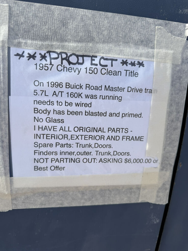 project clean body on 1996 Buick Rd. master drivetrain 5.7 L automatic 160 K miles was running needs to be wired. Body has been sandblasted and primed no glass. I have all the original parts interior and exterior and frame needs to be restored. Also, I have spare parts for sale trunk lid doors, inner, and outer fenders.