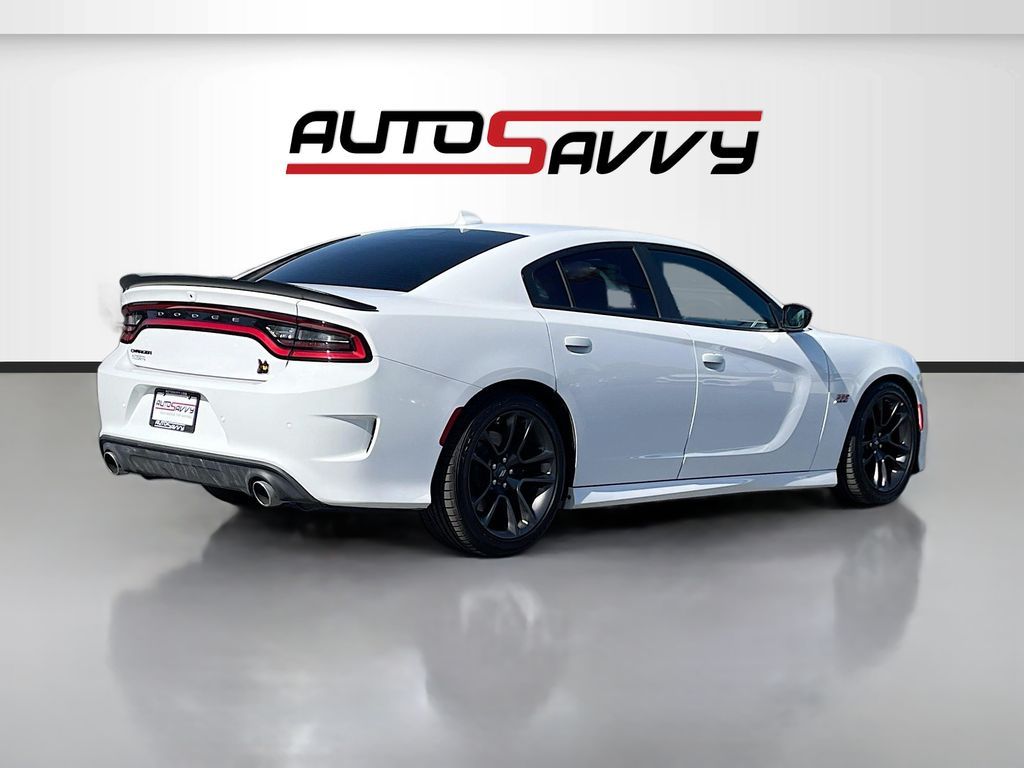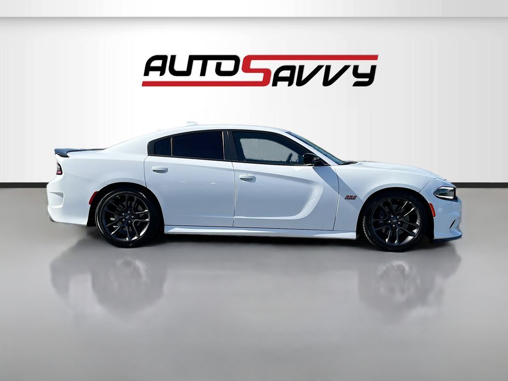 Experience the power and precision of the 2023 Dodge Charger Scat Pack, available at AutoSavvy Woods Cross. This certified pre-owned sedan boasts a low mileage of just 8,411, ensuring it's ready for the road ahead. Under the hood, you'll find a commanding HEMI 6.4L V-8 engine with cylinder deactivation, delivering an impressive 485 horsepower. The White Knuckle Clearcoat exterior complements the sleek black cloth interior, creating a bold and stylish presence. Enjoy a suite of premium features, including an 8.4-inch touchscreen display with Apple CarPlay and Android Auto, heated front seats, and a heated steering wheel for ultimate comfort. Safety and convenience are prioritized with advanced technology like adaptive cruise control, lane departure warning, and a backup camera, ensuring a secure and enjoyable driving experience. The current status of the title is branded, reflecting AutoSavvy's commitment to transparency and value. This Dodge Charger has undergone a rigorous inspection to meet high safety and performance standards, ensuring reliability for its next owner. As a certified vehicle, it comes with the added assurance of our 4-month/4,500-mile warranty, providing peace of mind for your investment. Visit AutoSavvy Woods Cross today to explore the thrilling capabilities of this 2023 Dodge Charger Scat Pack. Join our community of satisfied customers who trust AutoSavvy for quality vehicles with outstanding features and unbeatable value. Discover why the Charger Scat Pack is the ultimate choice for those seeking a blend of power, technology, and style in a sedan.