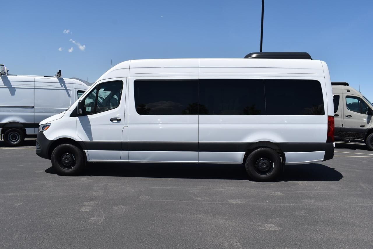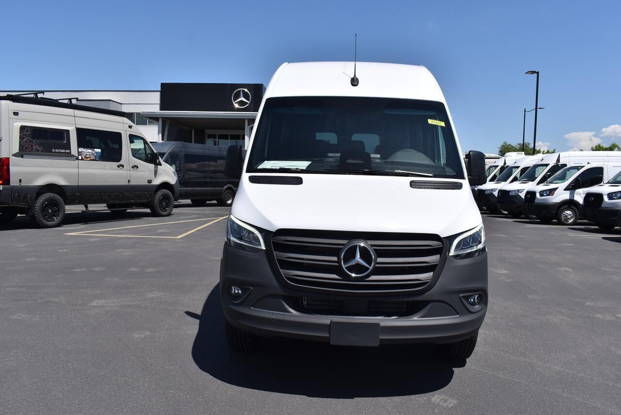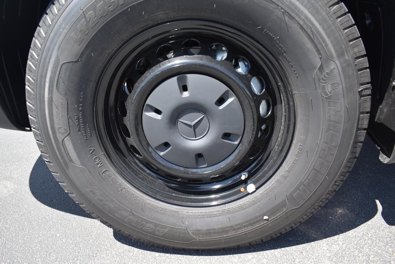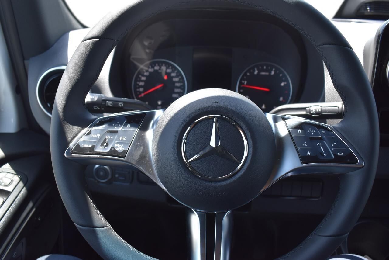 Exterior Parking Camera Rear,Fully automatic headlights,Active Distance Assist DISTRONIC®,Speed control,Bodyside moldings,Electrically Folding Exterior Mirrors,Fog Lamps w/Cornering Light Function,Heated door mirrors,High Beam Assist,LED High Performance Headlamps,Partial LED Tail Lights,Power door mirrors,ATTENTION ASSIST®,Comfort Overhead Control Panel,Driver door bin,Hinged Lid for Left & Right Storage Compartments,Hinged Lid for Storage Compartment,Illuminated entry,Leather Steering Wheel,Outside temperature display,Overhead console,Passenger seat mounted armrest,Pre-Installation for Navigation,Rear reading lights,Tachometer,Tilt steering wheel,3-Seater 1st-Row Comfort Bench Seat (Narrow),3-Seater 2nd-Row Comfort Bench Seat (Narrow),3-Seater 3rd-Row Comfort Bench Seat (Narrow),3rd row seats: bench,4-Seater 4th-Row Comfort Bench Seat,4th-Row Bench Seat,5th row bench seat,Armrest for Driver's Seat,Armrest for Front Passenger's Seat,Co-Driver Comfort Head Restraint,Co-Driver's Seat Lumbar Support,Comfort Driver's Seat,Comfort Passenger's Seat,Convenience Head Restraints for Pass. Compartment,Driver Comfort Head Restraint,Driver's Seat Lumbar Support,Driver's Seat Mounted Armrest,Front Bucket Seats,Heated Driver's Seat,Heated front seats,Maturin Fabric Upholstery,Standard Driver's Seat,Standard Front Passenger Seat,Passenger door bin,16 x 6.5J Steel Wheels,Rain sensing wipers,Variably intermittent wipers,3.923 Axle Ratio,Acoustic Package,Comfort Package,Comfort Package w/Seat Addition,Driver Convenience Package,Exterior Lighting Package,High-Performance Rear Air Conditioning Package,MBUX Package,Rear Comfort Package,Smartphone Integration Package,13 Speakers,5 Front & 8 Rear Audio System Speakers,AM/FM radio,Radio: MBUX Multimedia System w/10.25 Touchscreen,Radio: Standard,Air Conditioning,Front Compartment Heat Insulation,Heavy-Duty Rear Air Conditioner,Rear air conditioning,Rear window defroster,THERMOTRONIC Automatic Climate Control,Driver Seat Base 12V Power Outlet,Instrument Panel Front-to-Rear Outlet,Power steering,Power windows,Remote keyless entry,Steering wheel mounted audio controls,Traction control,2 Additional Master Keys,4-Wheel Disc Brakes,ABS brakes,Dual front impact airbags,Dual front side impact airbags,Emergency communication system: eCall Emergency System,Front anti-roll bar,Front wheel independent suspension,Low tire pressure warning,Overhead airbag,Rear anti-roll bar,Blind Spot Assist,Brake assist,Electronic Stability Control