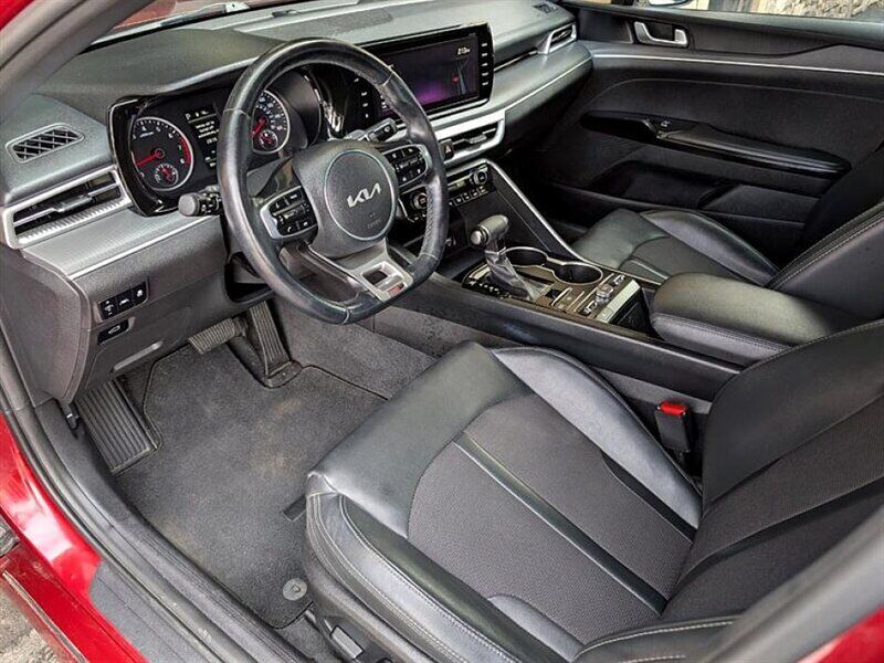 INSTALLED FEATURES: Air filtration, Front air conditioning: automatic climate control, Front air conditioning zones: dual, Airbag deactivation: occupant sensing passenger, Front airbags: dual, Knee airbags: driver, Side airbags: front / rear, Side curtain airbags: front / rear, Antenna type: diversity / mast, Auxiliary audio input: Bluetooth / iPod/iPhone / USB, Radio: AM/FM / HD radio / touch screen display / voice operated, Radio data system, Satellite radio: SiriusXM, Speed sensitive volume control, Total speakers: 6, ABS: 4-wheel, Braking assist, Electronic brakeforce distribution, Electronic parking brake: auto off, Front brake type: ventilated disc, Power brakes, Rear brake type: disc, Armrests: rear center with cupholders / rear folding, Center console trim: metallic, Dash trim: metallic, Door sill trim: scuff plate, Floor material: carpet, Interior accents: metallic-tone, Shift knob trim: urethane, Steering wheel trim: leather, Assist handle: front / rear, Autonomous lane guidance: lane centering, Cargo area light, Center console: front console with armrest and storage, Cruise control, Cupholders: front / rear, Multi-function remote: panic alarm / proximity entry system / trunk release, One-touch windows: 2, Overhead console: front, Power outlet(s): 12V front / USB front / USB rear, Power steering, Power windows: lockout button, Push-button start, Reading lights: front, Rearview mirror: manual day/night, Remote engine start, Steering wheel: tilt and telescopic, Steering wheel mounted controls: audio / cruise control / phone, Storage: accessory hook / door pockets / front seatback, Vanity mirrors: dual illuminating, Wireless charging station: front, Body side moldings: body-color, Door handle color: body-color, Exhaust: dual tip / integrated, Exhaust tip color: chrome, Front bumper color: body-color, Grille color: silver, Mirror color: black, Rear bumper color: body-color, Rear spoiler: lip, Rear spoiler color: black, Rear trunk/liftgate: power operated / sensor-activated, Skid plate(s): rear, Window trim: black, Connected in-car apps: Google POIs / Google search, Infotainment: UVO, Infotainment screen size: 10.25 in., Smartphone integration: Android Auto / Apple CarPlay, Clock, Compass, Digital odometer, External temperature display, Fuel economy display: MPG / range, Gauge: tachometer, Instrument cluster screen size: 4.2 in., Multi-function display, Trip odometer, Warnings and reminders: low fuel level / low washer fluid, Daytime running lights: LED, Exterior entry lights: approach lamps, Front fog lights: LED, Headlights: auto delay off / auto high beam dimmer / auto on/off / LED, Taillights: LED, Side mirror adjustments: power, Side mirrors: heated / integrated turn signals, 4WD type: on demand, Alternator: 130 amps, Battery rating: 760 CCA, Battery saver, Drive mode selector, Automatic emergency braking: front / front pedestrian / rear, Blind spot safety: sensor/alert, Camera system: rearview, Check rear seat reminder, Child safety door locks, Child seat anchors: LATCH system, Cross traffic alert: rear, Crumple zones: front / rear, Driver attention alert system, Emergency interior trunk release, Impact sensor: door unlock, Lane deviation sensors, Lane keeping assist, Pre-collision warning system: audible warning / pedestrian detection / visual warning, Rear pre-collision warning system: pedestrian detection, Rearview monitor: in dash, Vehicle exit safety system, Emergency locking retractors: front, Front seatbelts: 3-point, Rear seatbelts: 3-point, Seatbelt pretensioners: front, Seatbelt warning sensor: front, Driver seat: heated, Driver seat power adjustments: 10 / height / lumbar / reclining, Front headrests: 2 / adjustable, Front seat type: bucket, Passenger seat: heated, Passenger seat manual adjustments: 6 / height / reclining, Rear headrests: 3 / adjustable, Rear seat folding: split, Rear seat type: 60-40 split bench, Upholstery: cloth, Upholstery accents: leatherette, Anti-theft system: alarm / vehicle immobilizer, Power door locks: anti-lockout / auto-locking, Hill holder control, Stability control, Traction control, Front shock type: gas, Front spring type: coil, Front stabilizer bar, Front struts: MacPherson, Front suspension classification: independent, Front suspension type: lower control arms, Rear shock type: gas, Rear spring type: coil, Rear stabilizer bar, Rear suspension classification: independent, Rear suspension type: multi-link, Driver assistance app: roadside assistance, Electronic messaging assistance: voice operated / with read function, Hands-free phone call integration: voice operated, Navigation system: hard drive / touch screen display / voice operated, Smart device app compatibility: Kia MyUVO, Smart device app function: engine start / horn/light operation / lock operation / maintenance scheduling / maintenance status / vehicle location, Wireless data link: Bluetooth, Spare tire mount location: inside, Spare tire size: temporary, Spare wheel type: steel, Tire Pressure Monitoring System, Wheels: painted aluminum alloy, Front wipers: variable intermittent, Laminated glass: acoustic windshield, Power windows: safety reverse, Solar-tinted glass, Window defogger: rear
