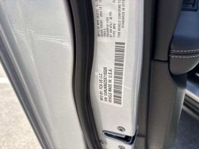 Quick Order Package 22E,Model Year Tracking,Trailer Tow Package,Capri Leatherette Seats,220 Amp Alternator,Manual Fold Seatbacks,3.45 Rear Axle Ratio,Automatic Headlamp Leveling System,Active Noise Control System,Front License Plate Bracket,Dual Exhaust Tips,Heavy-Duty Engine Cooling,Normal Duty Suspension,Rear Load Leveling Suspension,Radio: Uconnect 5 Nav with 10.1 Display,Wheels: 18 x 8.0 Polished/Painted Aluminum,7 and 4 Pin Wiring Harness,Class IV Receiver Hitch,Trailer Hitch Zoom,4-Wheel Disc Brakes,AM/FM radio: SiriusXM with 360L,Auto High-beam Headlights,Front Center Armrest w/Storage,Compass,Speed-Sensitive Wipers,Variably intermittent wipers,Turn signal indicator mirrors,Trip computer,Traction control,Tilt steering wheel,Telescoping steering wheel,Steering wheel mounted audio controls,Split folding rear seat,Speed control,Security system,Remote keyless entry,Reclining 3rd row seat,Rear window wiper,Rear window defroster,Rear reading lights,Rear anti-roll bar,Rear air conditioning,Radio data system,Power windows,Power steering,Power passenger seat,Power driver seat,Power door mirrors,Passenger vanity mirror,Passenger door bin,Panic alarm,Overhead console,Overhead airbag,Outside temperature display,Occupant sensing airbag,Memory seat,Low tire pressure warning,Knee airbag,Illuminated entry,Heated steering wheel,Heated rear seats,Heated front seats,Heated door mirrors,Garage door transmitter,Fully automatic headlights,Front reading lights,Front fog lights,Front dual zone A/C,Front anti-roll bar,Four wheel independent suspension,Emergency communication system,Dual front side impact airbags,Dual front impact airbags,Driver vanity mirror,Driver door bin,Delay-off headlights,Bumpers: body-color,Brake assist,Automatic temperature control,Audio memory,Anti-whiplash front head restraints,Alloy wheels,Adjustable head restraints: driver and passenger w/tilt,ABS brakes,3rd row seats: split-bench,Voltmeter,Tachometer,Spoiler,Power Liftgate,ParkView Rear Back-Up Camera,Navigation System,Front Bucket Seats,Electronic Stability Control,Air Conditioning,6 Speakers,MONOTONE PAINT APPLICATION,ENGINE: 3.6L V6 24V VVT UPG I W/ESS (STD),TRANSMISSION: 8-SPEED AUTOMATIC (850RE) (STD),GLOBAL BLACK CAPRI LEATHERETTE SEATS,WHEELS: 18 X 8.0 POLISHED/PAINTED ALUMINUM (STD),TIRES: 265/60R18 BSW A/S LRR (STD),MODEL YEAR TRACKING,QUICK ORDER PACKAGE 22E -inc: Engine: 3.6L V6 24V VVT UPG I w/ESS Transmission: 8-Speed Automatic (850RE),TRAILER TOW PACKAGE -inc: Rear Load Leveling Suspension Full Size Spare Tire 7 & 4 Pin Wiring Harness Dual Exhaust Tips Heavy Duty Engine Cooling 18 Full-Size Steel Spare Wheel Automatic Headlamp Leveling System Trailer Hitch Zoom 220 Amp Alternator Class IV Receiver Hitch,FRONT LICENSE PLATE BRACKET,SILVER ZYNITH,Four Wheel Drive,Power Steering,ABS,4-Wheel Disc Brakes,Brake Assist,Brake Actuated Limited Slip Differential,Aluminum Wheels,Temporary Spare Tire,Heated Mirrors,Power Mirror(s),Integrated Turn Signal Mirrors,Rear Defrost,Privacy Glass,Intermittent Wipers,Variable Speed Intermittent Wipers,Rear Spoiler,Remote Trunk Release,Power Liftgate,Power Door Locks,Daytime Running Lights,Automatic Headlights,LED Headlights,Fog Lamps,Automatic Highbeams,AM/FM Stereo,Navigation System,Satellite Radio,Bluetooth Connection,HD Radio,Requires Subscription,Premium Sound System,MP3 Capability,Steering Wheel Audio Controls,Auxiliary Audio Input,Premium Sound System,Bluetooth Connection,Power Driver Seat,Power Passenger Seat,Mirror Memory,Driver Adjustable Lumbar,Seat Memory,Heated Front Seat(s),Power Driver Seat,Driver Adjustable Lumbar,Power Passenger Seat,Passenger Adjustable Lumbar,Bucket Seats,Rear Bucket Seats,Heated Rear Seat(s),Adjustable Steering Wheel,Trip Computer,Power Windows,WiFi Hotspot,3rd Row Seat,Heated Steering Wheel,Keyless Entry,Power Door Locks,Keyless Start,Keyless Entry,Power Door Locks,Universal Garage Door Opener,Cruise Control,Adaptive Cruise Control,Climate Control,Multi-Zone A/C,A/C,A/C,Rear A/C,Woodgrain Interior Trim,Bucket Seats,Premium Synthetic Seats,Driver Vanity Mirror,Passenger Vanity Mirror,Driver Illuminated Vanity Mirror,Passenger Illuminated Visor Mirror,Floor Mats,Mirror Memory,Seat Memory,Remote Engine Start,Keyless Start,Remote Engine Start,Smart Device Integration,Requires Subscription,Navigation System,Smart Device Integration,Power Windows,Power Door Locks,Trip Computer,Security System,Immobilizer,Traction Control,Stability Control,Traction Control,Front Side Air Bag,Telematics,Requires Subscription,Rear Parking Aid,Blind Spot Monitor,Cross-Traffic Alert,Rear Collision Mitigation,Lane Departure Warning,Lane Keeping Assist,Lane Departure Warning,Front Collision Mitigation,Tire Pressure Monitor,Driver Air Bag,Passenger Air Bag,Front Head Air Bag,Rear Head Air Bag,Passenger Air Bag Sensor,Knee Air Bag,Child Safety Locks,Back-Up Camera
