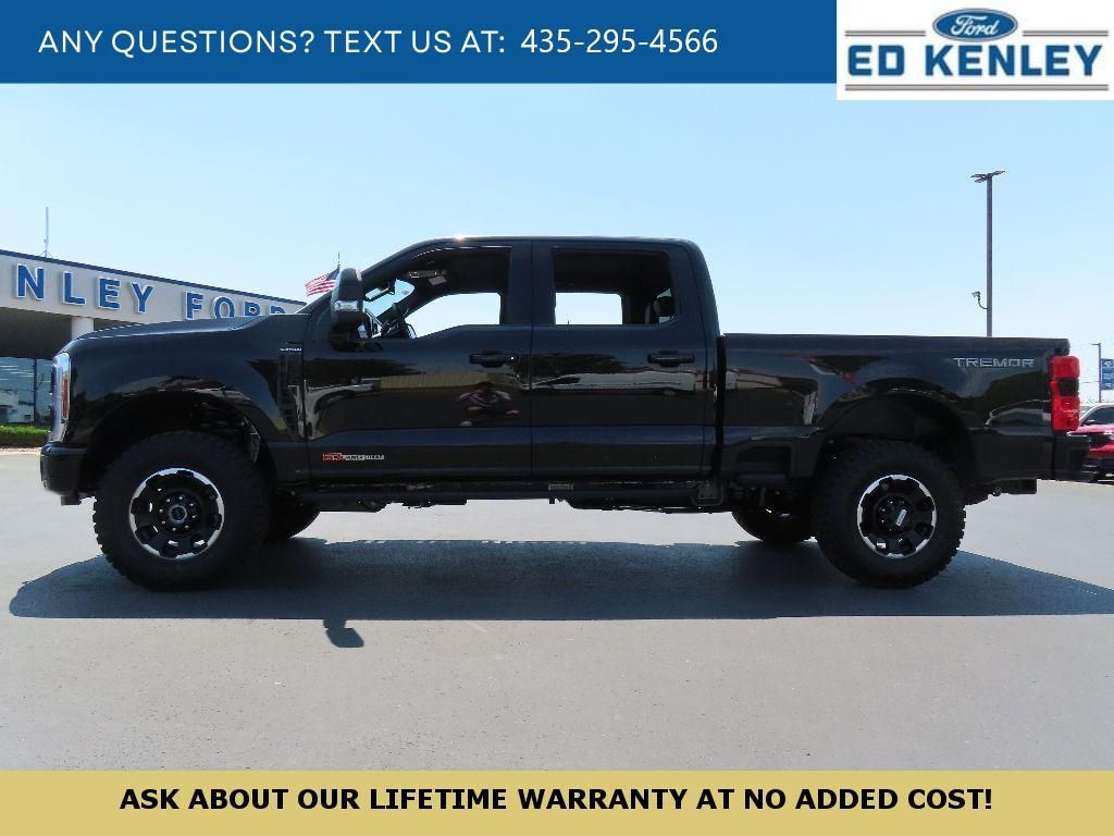 Tremor Off-Road Package: Tremor Off-Road Decal; Transfer Case and Fuel Tank Skid Plates; LT285/75R18E BSW Spare Tire; Textured Matte Finish Off-Road Running Boards; Conventional Road Spare Wheel; Lane Departure Warning,Order Code 713A: TorqShift 10-Speed Automatic Transmission; 20" Bright Machined and Painted Aluminum Wheels; Unique Platinum Leather 40/console/40 Seats; LT275/65Rx20E BSW A/T (4) Tires; B&O Unleashed Sound System by Bang & Olufsen Radio,5th Wheel/gooseneck Hitch Prep Package,Electronic-Locking with 3.55 Axle Ratio,Rapid-Heat Supplemental Cab Heater,Vehicle Safe by Console Vault,Upfitter Switches (6),Lane Centering hands-on cruise control,Predictive Speed Assist Automatic curve slowdown cruise control,FordPass Connect 5G mobile hotspot internet access,Ford Co-Pilot360 - Reverse Camera rear mounted camera,Ford Co-Pilot360 - Reverse Brake Assist collision mitigation,Adaptive Cruise Control with Stop-and-Go,Head-up display,Brake assist system,Cruise control with steering wheel mounted controls,Power open and close tailgate,Ventilated driver and front passenger seats,Integrated navigation system with voice activation,Keyfob remote engine start,Heated steering wheel,Heated driver and front passenger seats,Heated rear seats,Leather front seat upholstery,Primary monitor touchscreen,Lane-Keeping System,Driver seat power reclining, lumbar support, fore/aft control and height adjustable control,Part-time 4WD,Powerstroke 6.7L V-8 diesel direct injection, DEVCT intercooled turbo, diesel, engine with 500HP,Front wireless smart device charging,SYNC 4 with Enhanced Voice Recognition (Alexa-Built-In) built-in virtual assistant,PCA with AEB and Intersection Assist forward collision mitigation with left turn assist,Driver Alert,Intelligent Access with hands-free access and push button start,360 Degree Camera aerial view camera,Onboard scale,Weight capacity alert,Bluetooth wireless audio streaming,Pro Trailer Backup Assist vehicle and trailer reverse assist,Pro Trailer Hitch Assist automated vehicle to trailer hitching assist,Gauge cluster display size: 12.00,Front mounted camera,Right side camera,Pickup box camera,Left side camera,BLIS with Trailer Tow Coverage blind spot warning,Pedestrian detection warning,Traffic sign recognition,Dual-zone front climate control,SYNC 4 with Enhanced Voice Recognition (Alexa-Built-In) voice-activated climate control,Rock Crawl Mode off-road speed control,Ford Co-Pilot360 - Auto High Beam auto high-beam headlights,SecuriLock immobilizer,B&O Unleashed Sound System by Bang & Olufsen speakers,SiriusXM Traffic real-time traffic,SYNC 4 handsfree wireless device connectivity,Smart device wireless mirroring