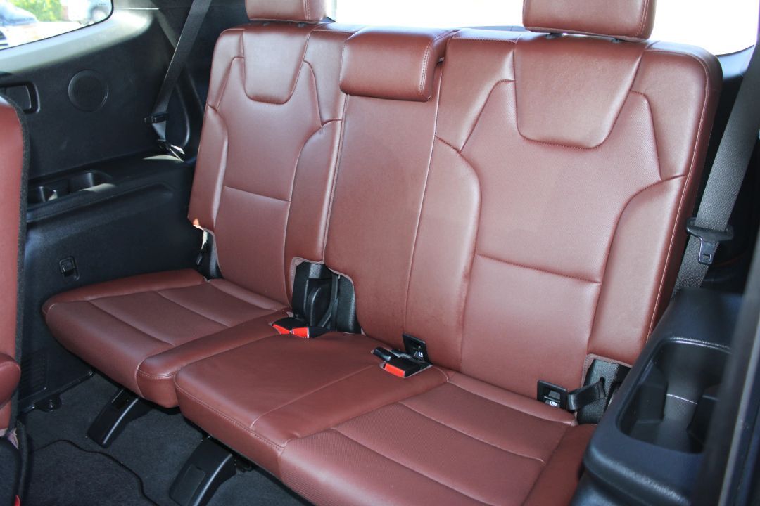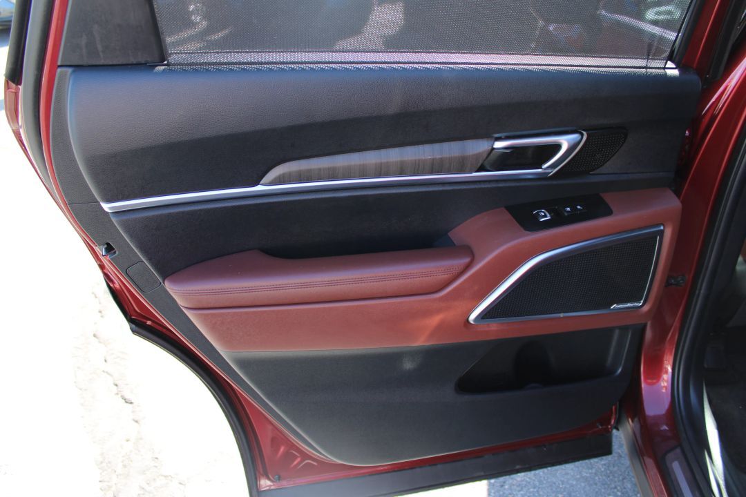 ? Interior: Nappa leather seats, heated &; ventilated first and second-row seating, panoramic dual sunroofs, and woodgrain trim throughout